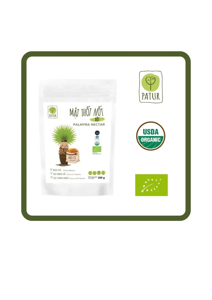 Mật thốt nốt là đặc sản nổi tiếng của vùng Bảy Núi, An Giang. Mật thốt nốt bột hữu cơ PATUR là sự kết hợp giữa sự tiện dụng của dạng bột mịn và tiêu chuẩn canh tác hữu cơ (organic) nghiêm ngặt.